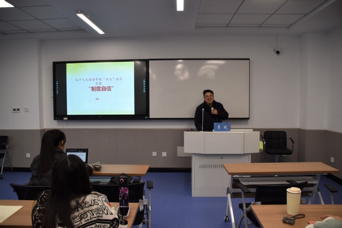 12月9日下午,国际联合审计学院第一期青共校第五讲于IEA1教室举行。本次团课主题为“从十九大报告中的法治音符管窥制度自信”,由校心理健康教育与指导中心副主任李斌老师主讲,我院青共校全体学员参与听讲。