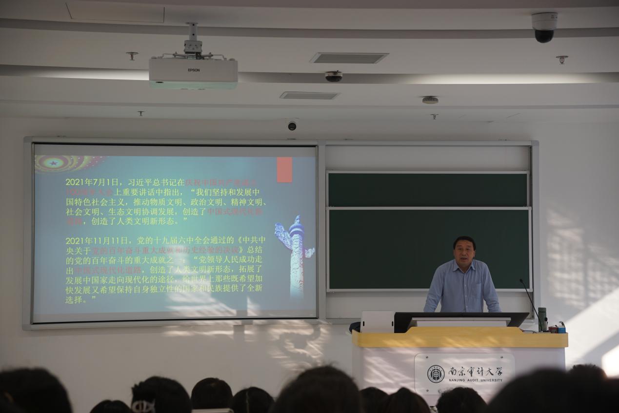 11月29日下午,713贵宾会检测线路邀请原党总支书记姜德波教授为教工党支部、学生发展对象、入党积极分子、入团积极分子上专题党课,主题为“经济学视角理解中国式现代化”。713贵宾会检测线路党总支书记江振春主持党课。