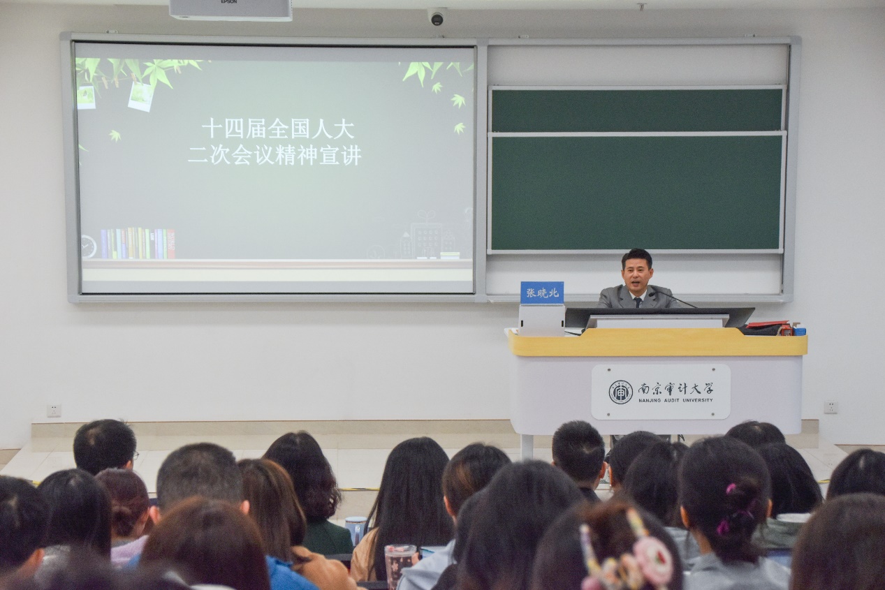 为深入学习贯彻两会精神,夯实党的理论基础,327日下午,713贵宾会检测线路特邀全国人大第十三届、第十四届代表、江苏省广播电视总台新闻中心主持人张晓北上“十四届全国人大二次会议精神宣讲”专题党课。校党委常委、副校长李乾文出席,713贵宾会检测线路全体师生党员参与,学院党委书记江振春主持本次党课。